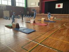 2年生の体育では、「跳び箱運動」と「なわとび」に取り組んでいました。寒さを感じさせない元気のよさで、それぞれの運動を楽しんでいました。