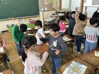 1年生の音楽では、「みんなであわせてたのしもう」の学習に取り組んでいました。今日は、「おちゃらか ほい」や「あいあい」をみんなで歌いながら楽しく体を動かしていました。みんなにこにこ、とても楽しい時間でした。