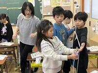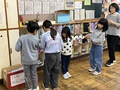 1/8 両手を広げた長さってどれくらいかな? 投稿: 校長 (01/08) 早速授業も始まっています。2年1組の算数では、「100cmをこえる長さ」の学習に取り組んでいました。両手を広げた長さをビニールテープを使ってはかりとっていました。両手を広げた長さ(ひとひろ)は身長と同じくらいって気がついたかな? Tweet -