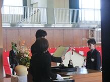 3/10 61名の旅立ちを祝って ー第43回卒業式ー 投稿: 校長 (03/10) 今日は、本校の第43回卒業式が執り行われました。61名の卒業生には一人一人へ卒業証書が授与され、皆、緊張しながらも引き締まった表情で式に臨んでいました。式が終わると、いつもの明るい笑顔があふれ、温かな雰囲気に包まれました。卒業生の皆さん、中学校でもさらなる活躍を期待しています。がんばってくださいね! Tweet -