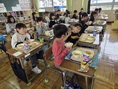 4/9 新しい学年で、給食スタート! 投稿: 校長 (04/09) 2年生以上では、今日から給食も始まりました。久しぶりの給食に加え、新しい学年や新しい友達との初めての給食となり、教室には明るい雰囲気が広がっていました。 Tweet -