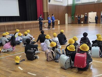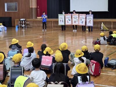 4/23 『いかのおすし』を学ぶ下校指導! 投稿: 校長 (16:24) 今日は、全校下校指導を行いました。今回の目的は、「一列で歩く」「危険な場所を確認する」ことでした。今日は、サッカーチームの福井ユナイテッドFCの選手や関係者の方、福井南署の署員の方にご来校いただき、子どもたちに「いかのおすし」など安全に過ごすための大切なポイントについてご指導いただきました。今回の学びを生かし、これからも自分の命を守る行動を大切にしてほしいと思います。 Tweet -